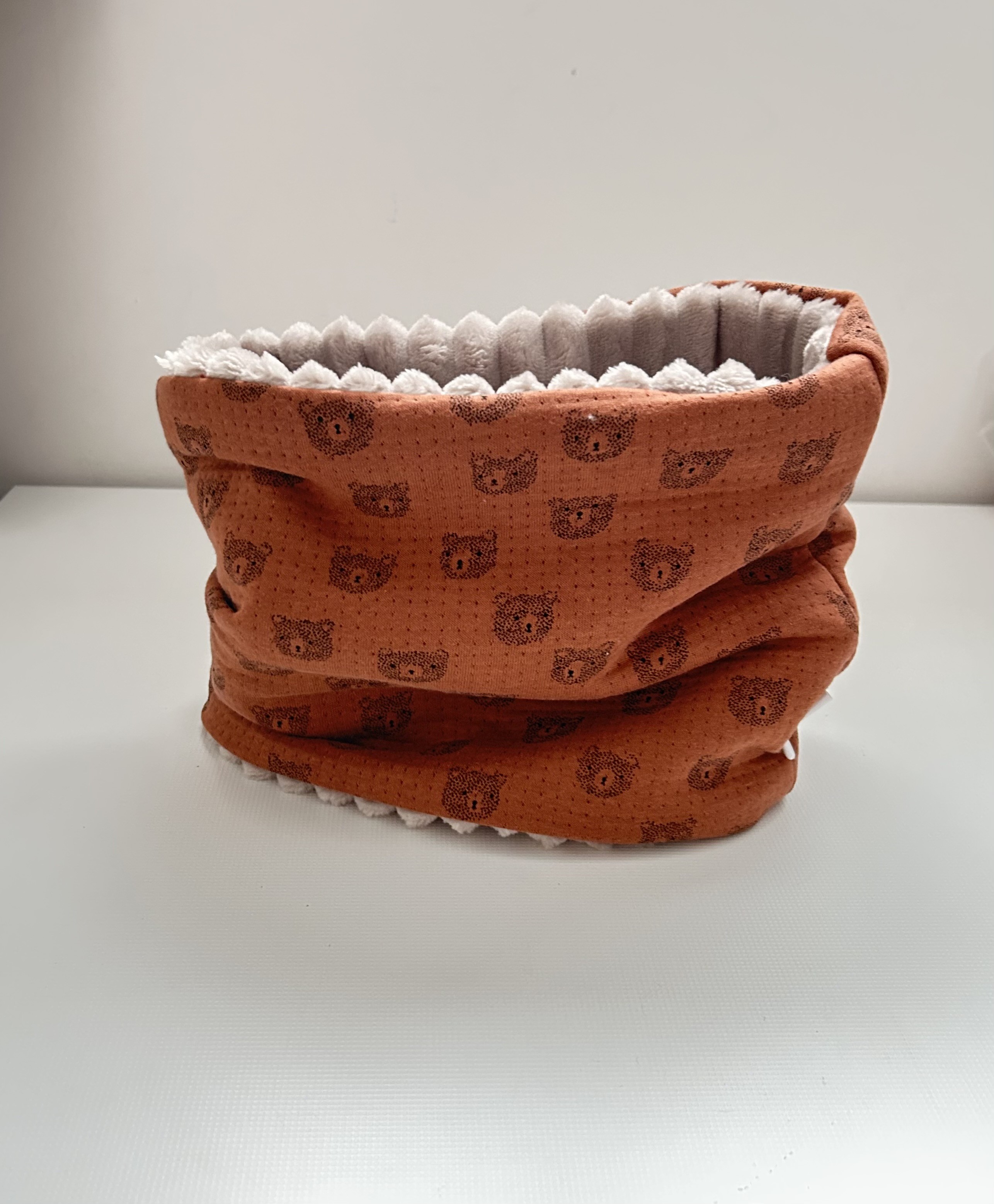 Snood en tissu jersey piqué ourson et intérieur en doublure polaire côtelé.