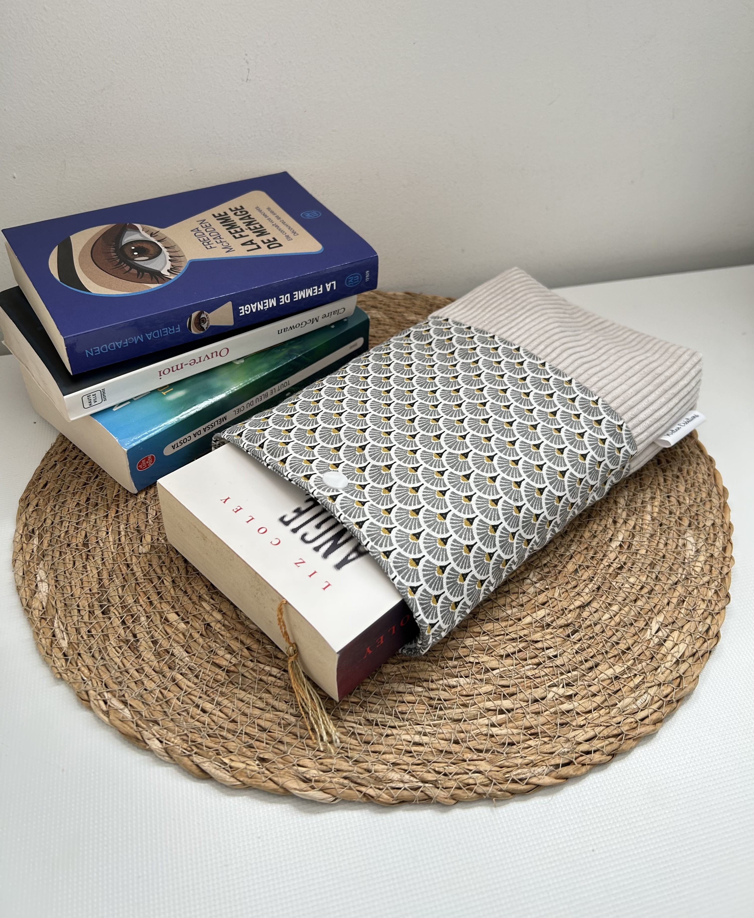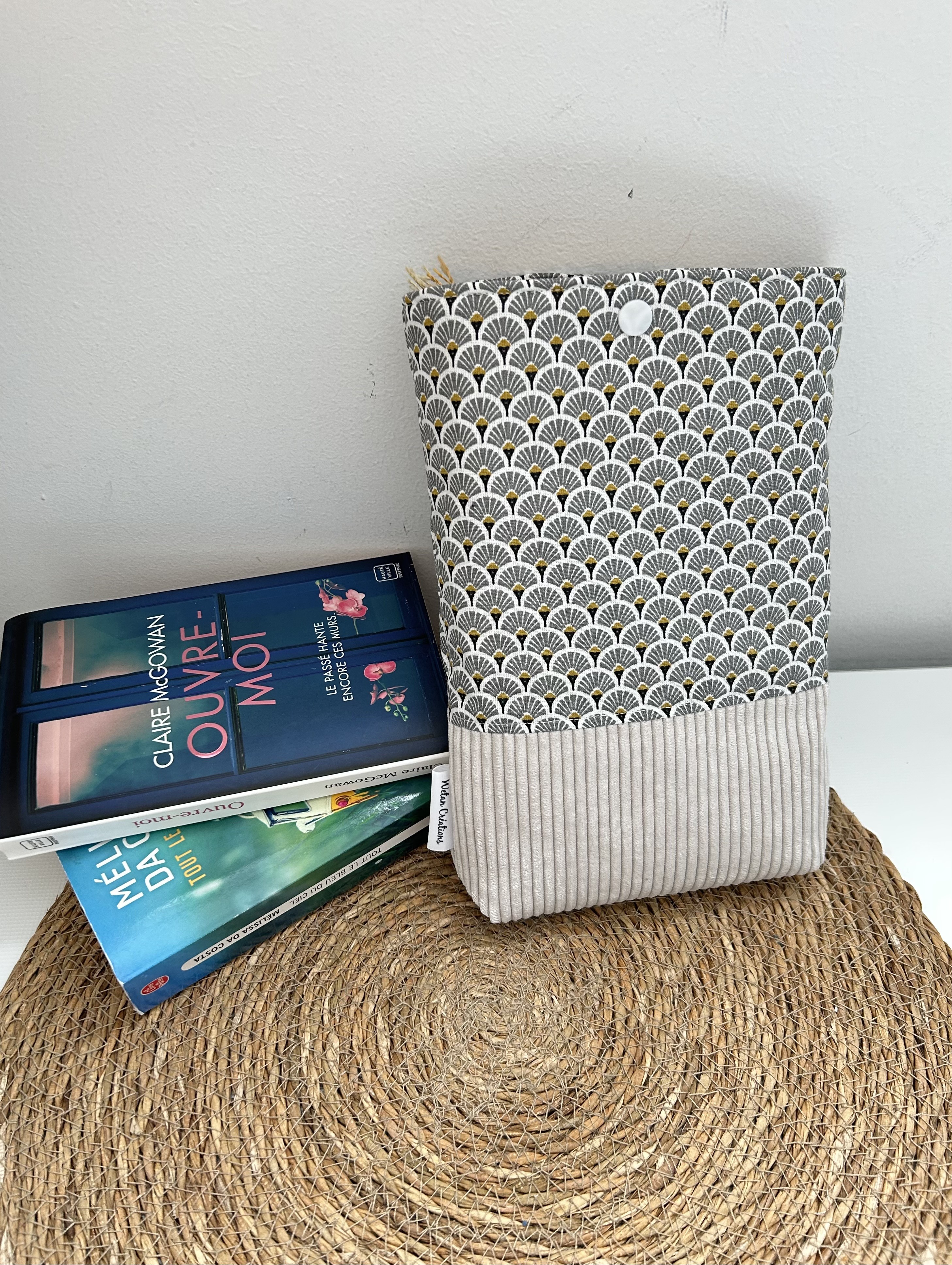 Emmenez vos livres partout avec vous lors de vos déplacements, voyages,... sans les abîmer grâce à la pochette en coton et lin , doublé en molleton.