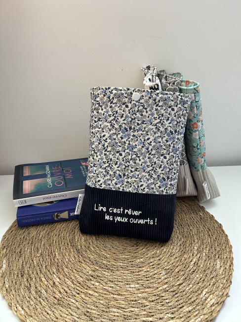 Pochette personnalisée avec le texte"Lire c'est rêver les yeux ouverts !" .Possibilité de personnaliser la pochette également avec un prénom, me contacter