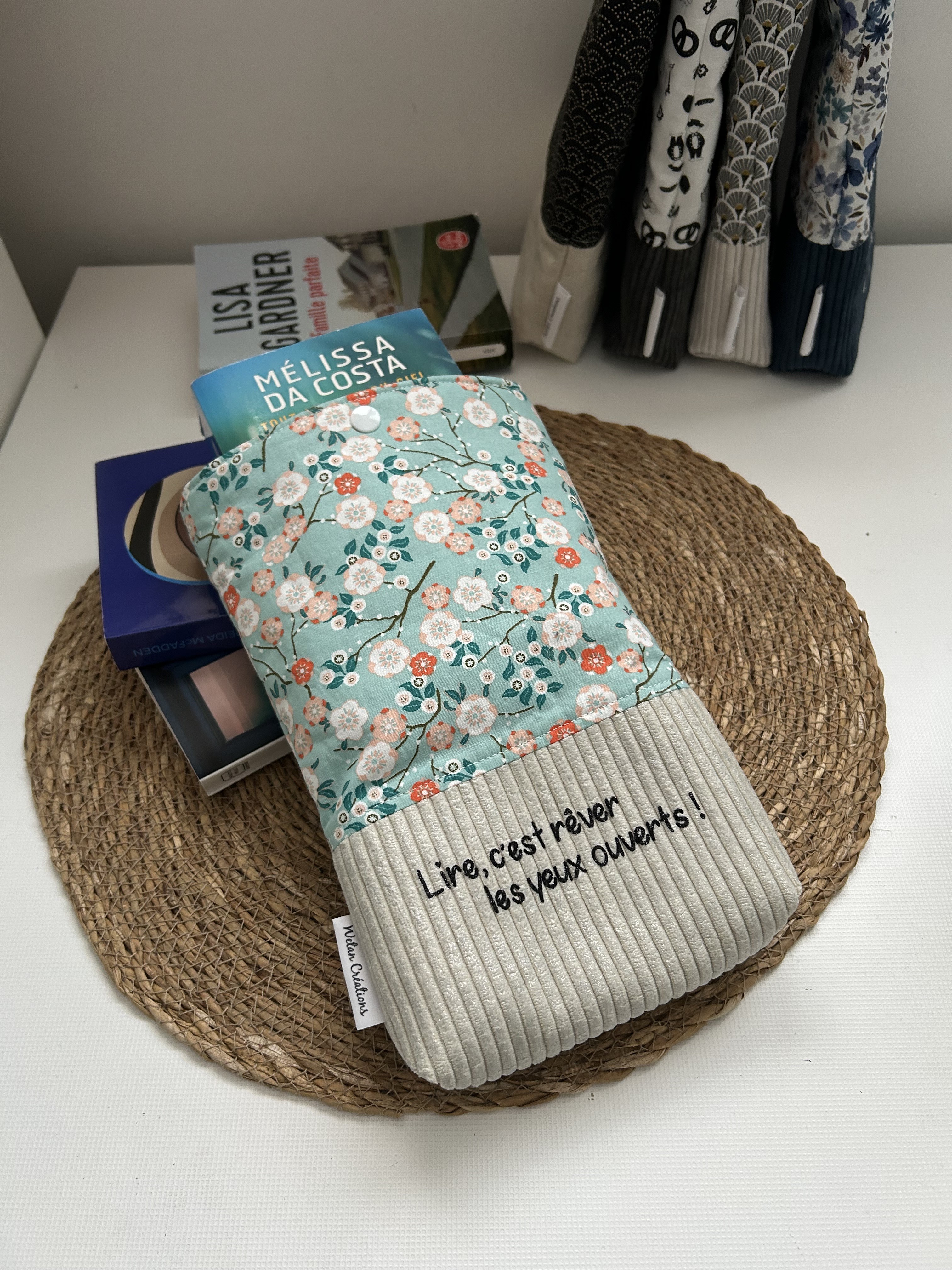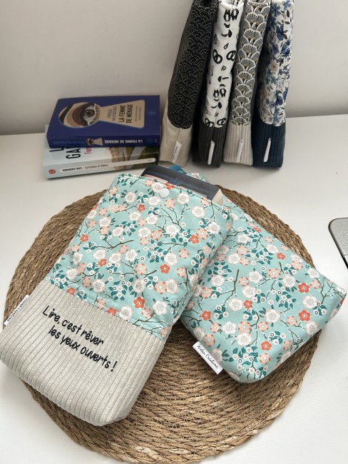 Emmenez vos livres partout avec vous lors de vos déplacements, voyages,... sans les abîmer grâce à la pochette en coton et lin , doublé en molleton.