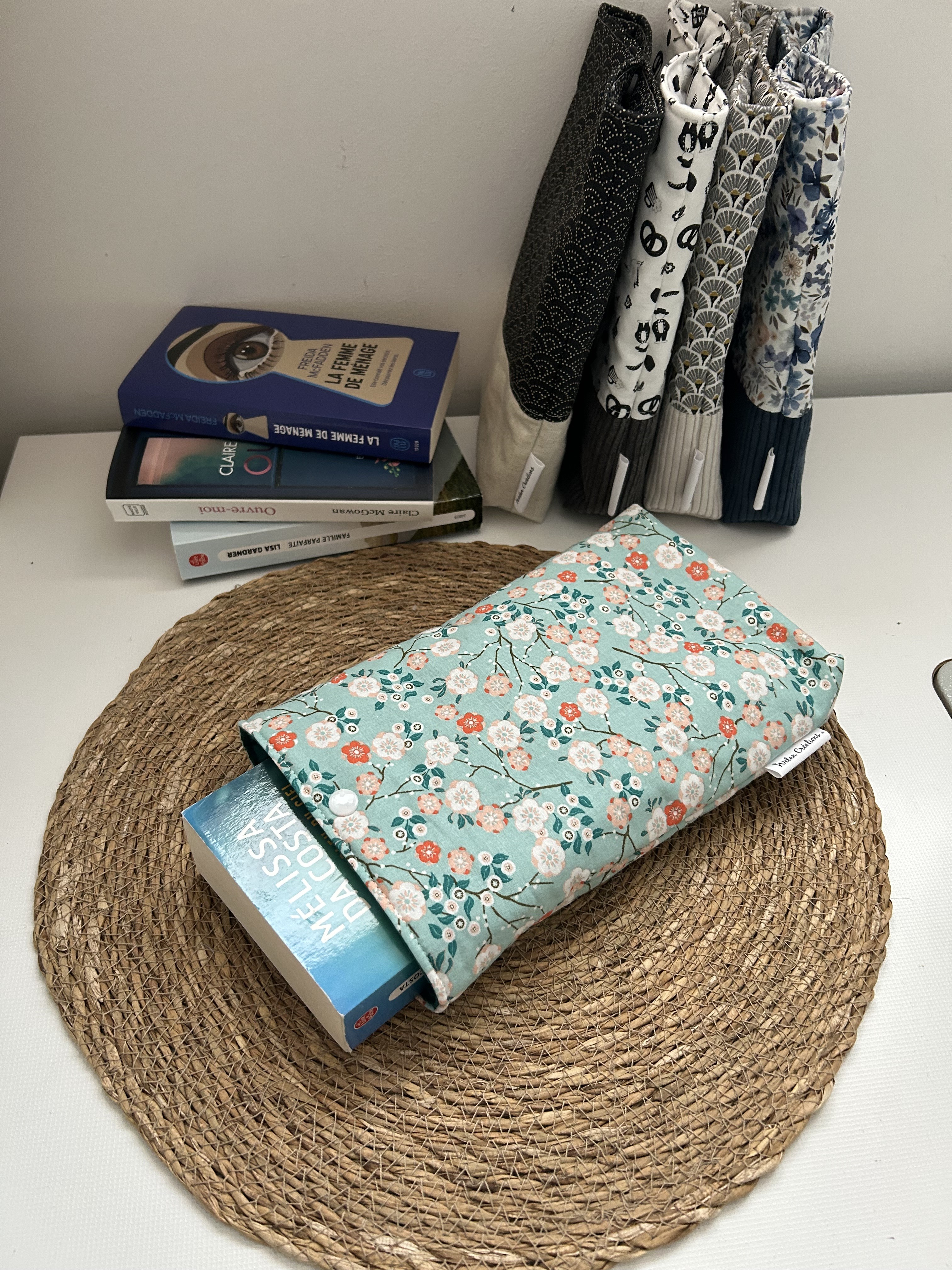 Emmenez vos livres partout avec vous lors de vos déplacements, voyages,... sans les abîmer grâce à la pochette en coton et lin , doublé en molleton.