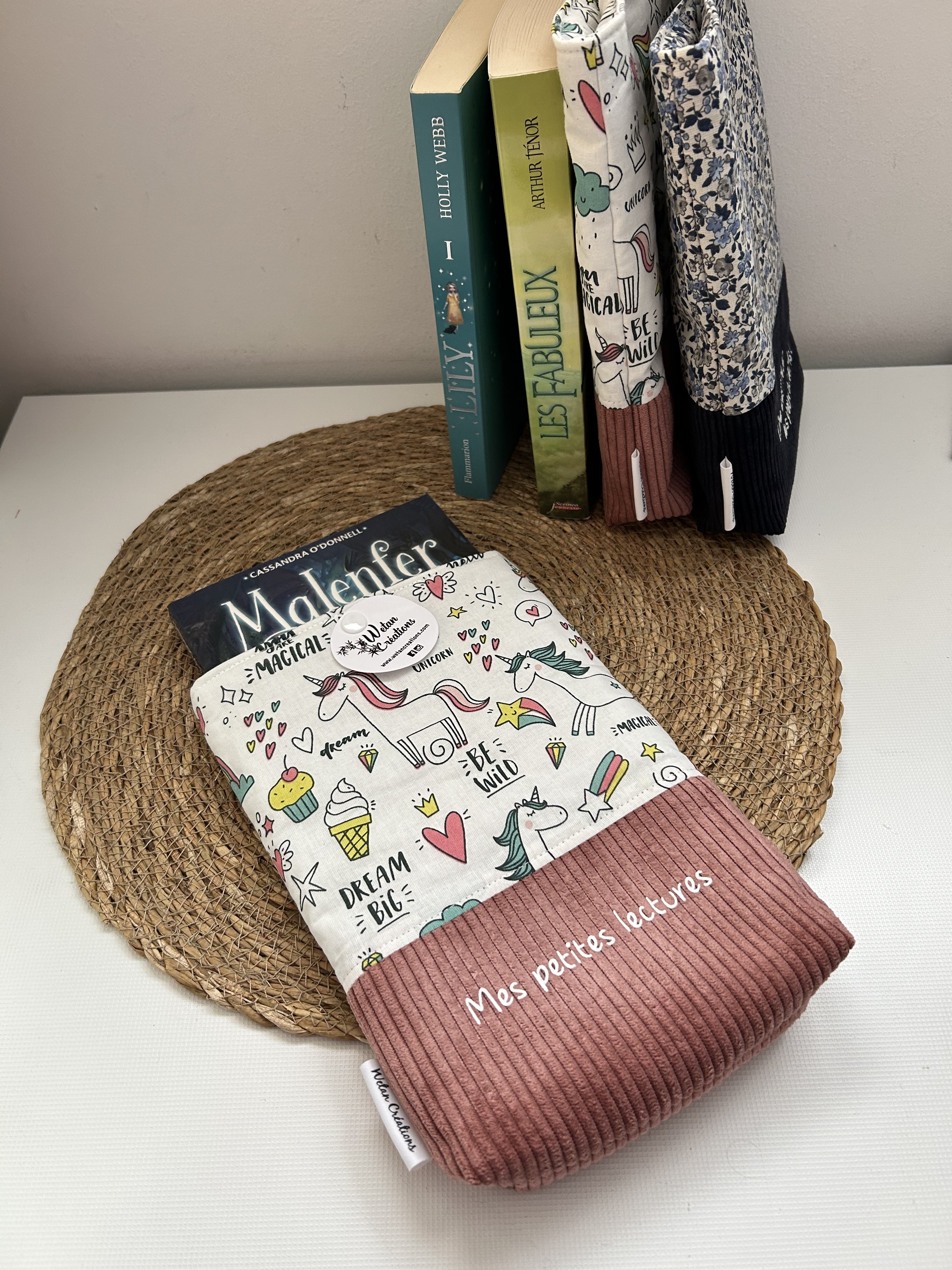 Pochette personnalisée avec le texte"Mes petites lectures " .Possibilité de personnaliser la pochette également avec un prénom, me contacter
