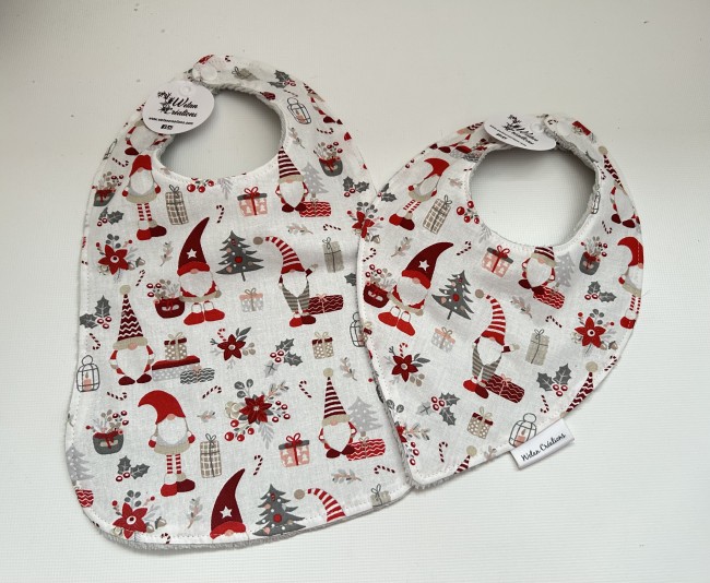 Duo de bavoirs et anneau de dentition motif alsacien rouge et beige