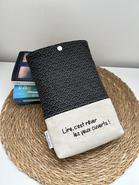 Pochette à livre de poche molletonnée - housse de protection - motifs japonais noir et lin