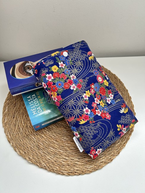 Pochette à livre de poche molletonnée - housse de protection - motif japonais bleu