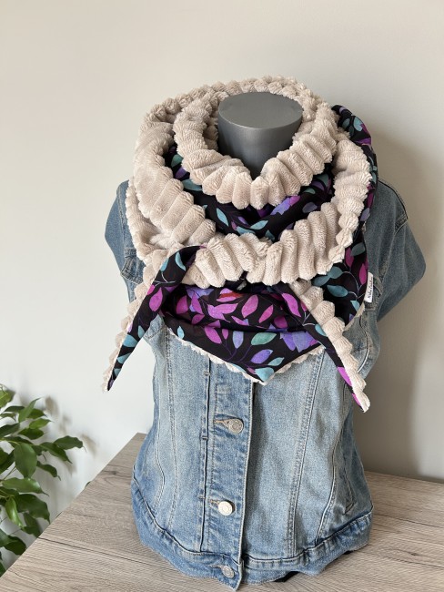 Chèche/écharpe triangle motif tâches et polaire côtelé taupe